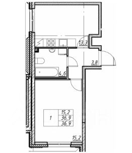 Планировка продуманная и функциональная: прихожая с местом для размещения гардеробного шкафа, просторная спальня, кухня-столовая, совмещённый санузел.