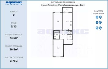 Кухня-гостиная площадью 17,7 м2 с кухонным островком. На островке удобно готовить и завтракать или устроить кулинарный поединок с членами семьи или гостями. Кухонная зона оборудована всей необходимой техникой, в том числе вместительной посудомоечной машиной 60 см шириной, плитой, духовкой, холодильником и фильтром питьевой воды. Также здесь раскладной двухспальный диван - для размещения гостей. Из кухни-гостиной имеется выход на балкон 4,4 м2 с панорамным остеклением, где приятно провести время.