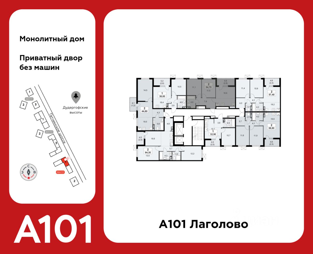 "А101 Лаголово" - современный город у подножия знаменитых Дудерговских высот, в объятиях чистейших озёр и зелёных живописных массивов, наполненный всем необходимым для счастливой жизни.