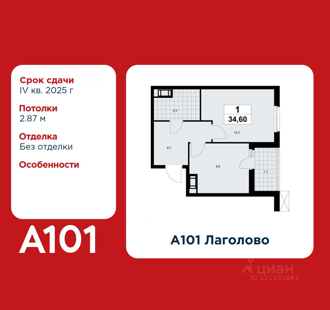 ПЕРЕУСТУПКА ПРАВА! Продаётся квартира в новостройке — ЖК "А101 Лаголово" , корп. 1.1