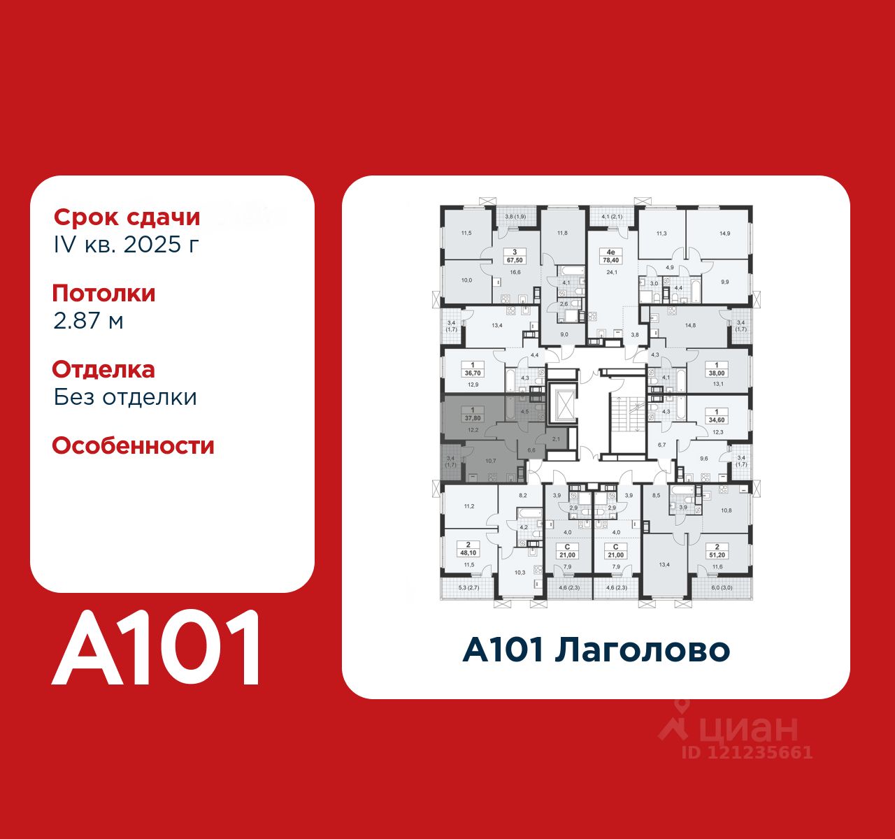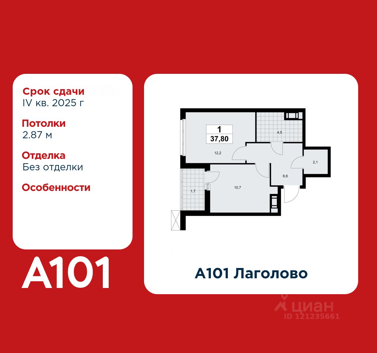 Компания-застройщик — ГК "А101". Стоимость квартиры — 4 900 000 руб.