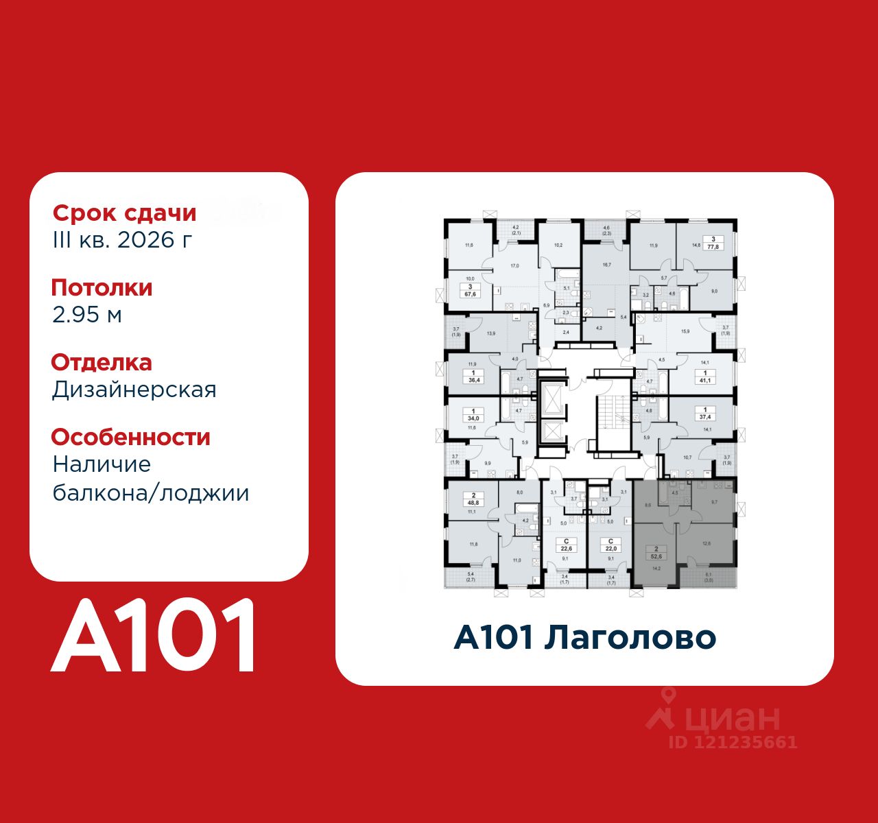 ГК "А101" - крупный инвестиционно-строительный холдинг, занимает 6-е место по объему строительства в России (по данным "Единого ресурса застройщиков" на 2023 год). НКР присвоило ГК "А101" кредитный рейтинг A+.ru, подтверждая его надежность и финансовую устойчивость для завершения строительства ЖК.