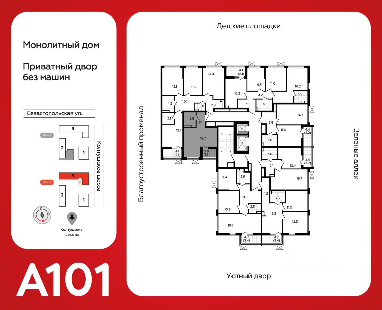 ГК "А101" - крупный инвестиционно-строительный холдинг, занимает 6-е место по объему строительства в России (по данным "Единого ресурса застройщиков" на 2023 год). НКР присвоило ГК "А101" кредитный рейтинг A+.ru, подтверждая его надежность и финансовую устойчивость для завершения строительства ЖК.