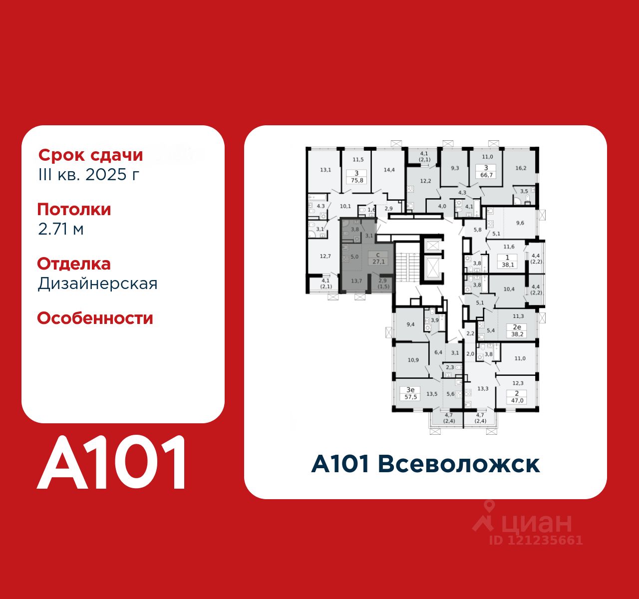 ПЕРЕУСТУПКА ПРАВА! Продаётся квартира в новостройке — ЖК "А101 Всеволожск" , корп. 1.3