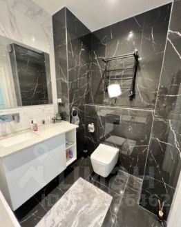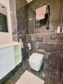 Великолепный санузел площадью 5,2 кв.м оформлен для СПА-ухода за собой. Красота и много мест для хранения косметики.