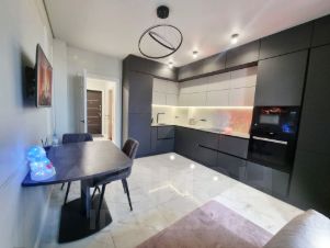 Ремонт класса Премиум от известной ремонтной фирмы. Мраморные столешницы на кухне и в ванной за 200тыс руб. Ванна из литьевого мрамора, как и раковина, итальянской фирмы Montebianco. Проводка сделана с учетом интернет-кабелей и кабеля антенны. Фильтры для воды. Разные сценарии освещения спотами, люстрами и светильниками. Подвесные потолки с шумоизоляцией. Крупноформатный керамогранит, межкомнатные двери VellDoris из массива дерева в эмали сделаны на заказ за 40 тыс руб каждая. Теплый пол на кухне и на лоджии. Гипсовая лепнина на стенах выполнена на заказ. Идеальный штукатурный слой класса К4 под покраску.