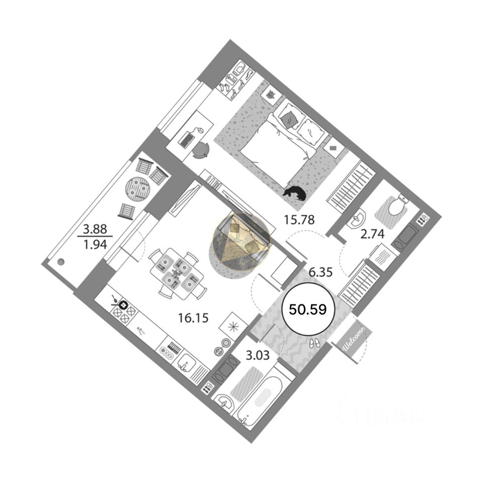Срочно продаётся 2Е-квартира с одной спальней общей площадью 50.59 м2. в Приморском районе Санкт-Петербурга. Квартира находится в доме комфорт-класса, оформленном в стиле античной эстетики. Идеальный вариант для тех, кто хочет жить в стильном доме в окружении природы.