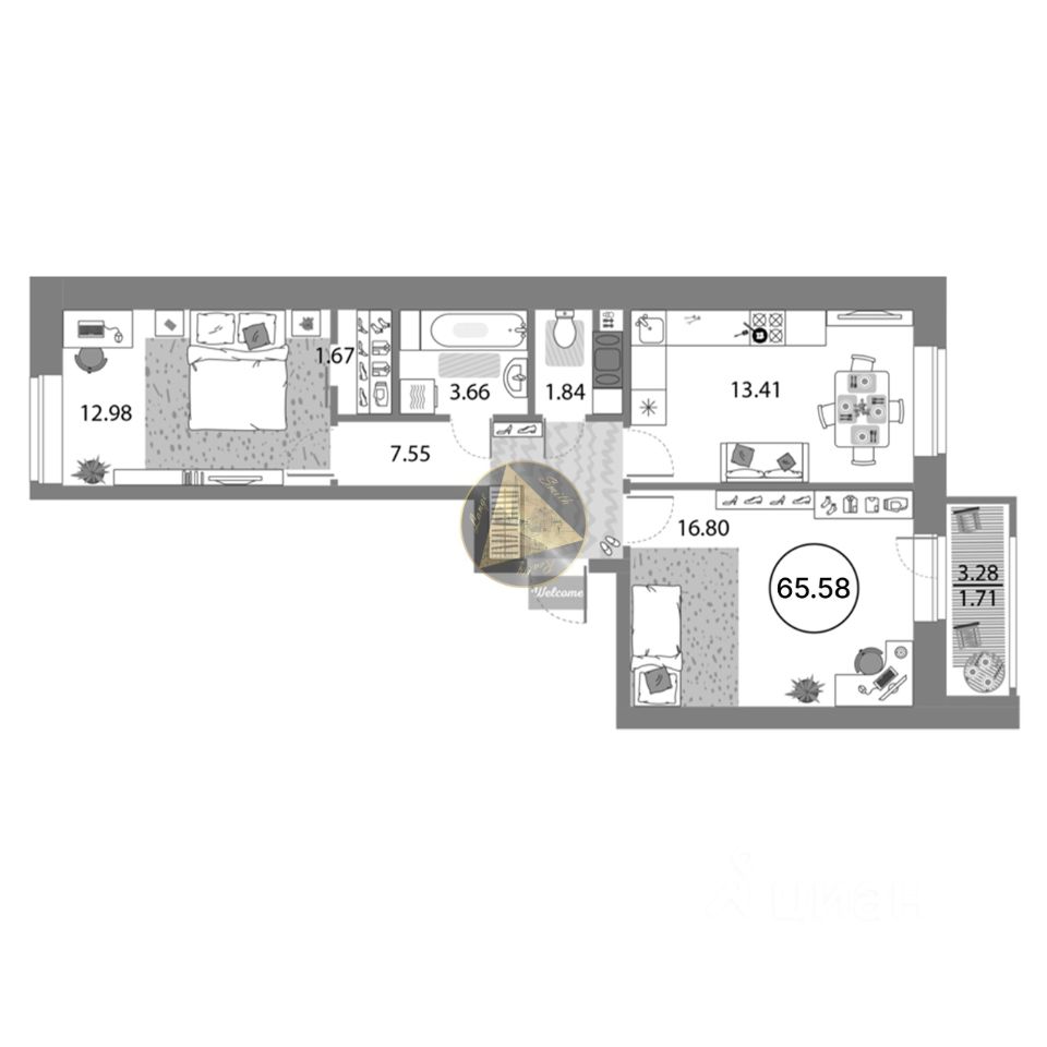 Срочно продаётся 2-комнатная квартира общей площадью 65,58 м2. в Приморском районе Санкт-Петербурга. Квартира находится в доме комфорт-класса, оформленном в стиле античной эстетики. Идеальный вариант для тех, кто хочет жить в стильном доме в окружении природы.