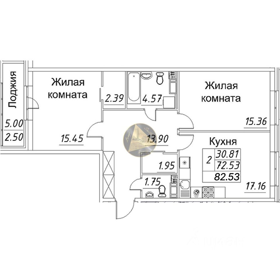 - Общая площадь квартиры 82.53 м2