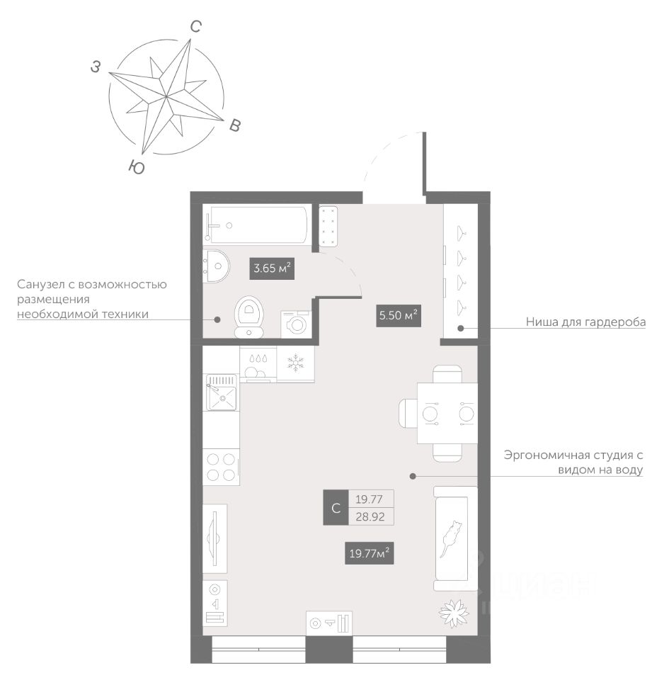 Цена со специальной скидкой в прямой продаже от застройщика — только в этом месяце. Апартамент-студия в комплексе класса бизнес-лайт Zoom Чёрная Речка на 7-м этаже. Общая площадь 28,92. Предчистовая отделка.