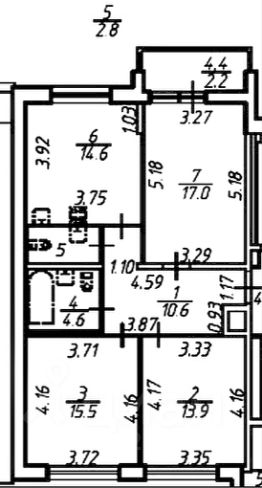 Квартира имеет отличную планировку: окна на две стороны, общая площадь с учетом лоджии 83.4 м2 (79 м2 + лоджия 4.4 м2), кухня-гостиная почти 15 м2, 3 изолированные комнаты: 17 м2 с выходом на застекленную лоджию 4.4 м2, комната 15.5 м2, комната 13.9 м2, коридор 10.6 м2, санузел раздельный (ванная 4.6 м2, туалет 2.8 м2), все помещения имеют правильную форму.