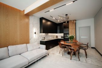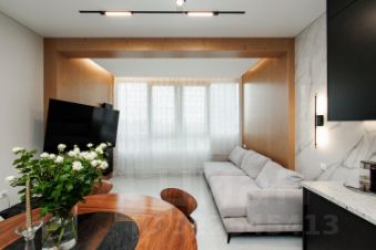Главной особенностью данной квартиры является просторная кухня-гостиная с окнами в пол! Она имеет две функциональные зоны: обеденную и лаунж-зону для отдыха всей семьей! Интерьер выполнен в светлых тонах, что визуально расширяет пространство и наполняет квартиру светом и воздухом.