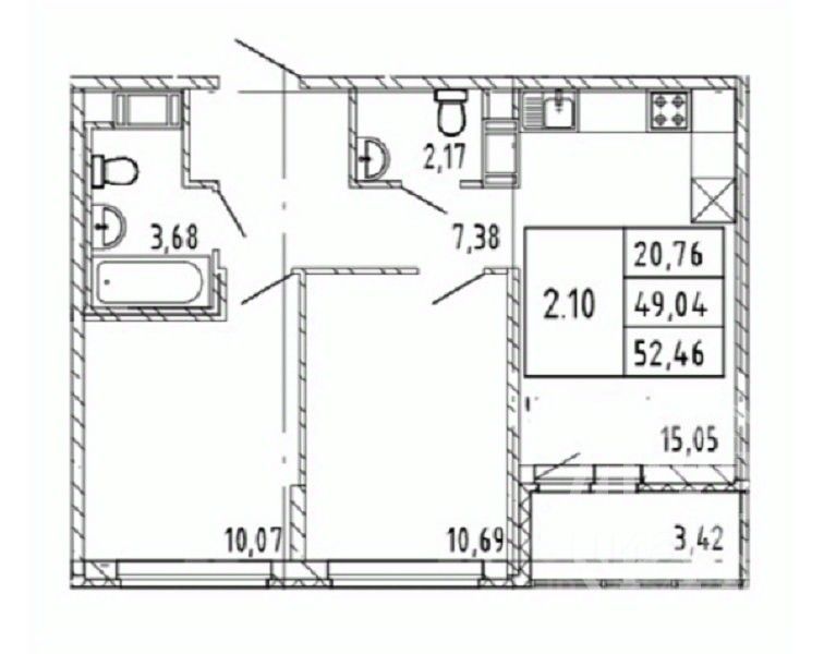 Продам большую 2- комнатную квартиру с кухней- гостинной на 7 этаже в ЖК Новые Горизонты.