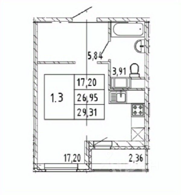 Продам просторную квартиру- студию с балконом на 6 этаже в ЖК Новые Горизонты.