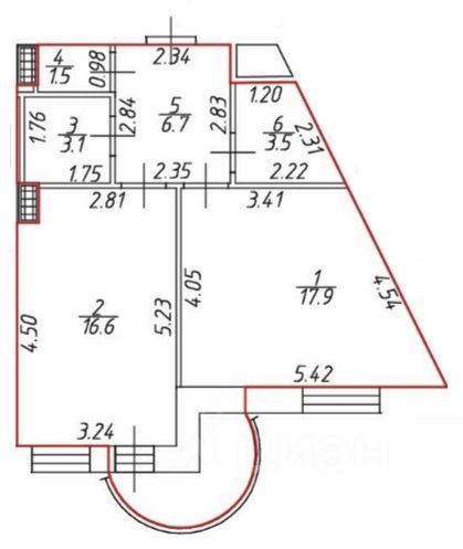 * Комната 17,9 м² нестандартной формы позволит вам реализовать смелые дизайнерские решения