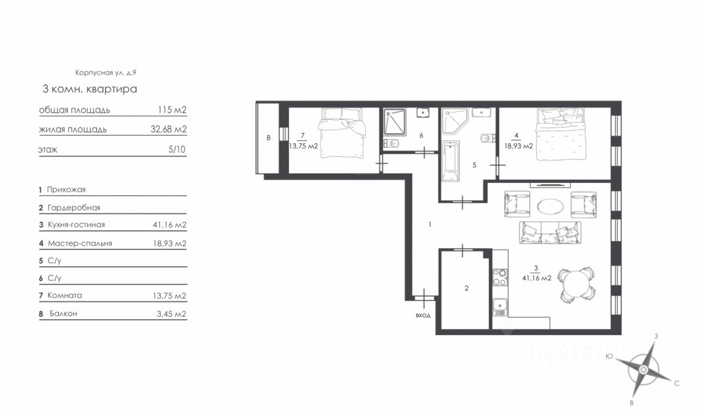 Планировка: просторная кухня-гостиная с зоной отдыха, мастер-спальня с ванной комнатой, вторая спальня, гардеробная, вторая ванная комната с душевой.