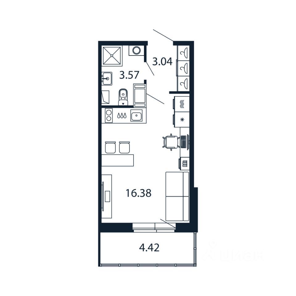 Прямая продажа от застройщика! Готовая Студия 22.4 кв.м с чистовой отделкой на 9 этаже в сданном ЖК "Полис Лаврики".