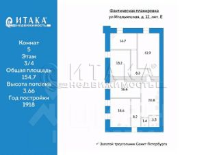 Квартира: Просторная, 155 квадратных метров, с продуманной планировкой и ориентацией на две стороны. Потолки впечатляют высотой 3,6 метра, а огромные окна наполняют пространство воздухом, светом и ощущением свободы! В квартире практически отсутствуют несущие стены, что открывает широкие возможности для творческих перепланировок. Шесть окон смотрят в уютный зеленый двор (северное и восточное направления).