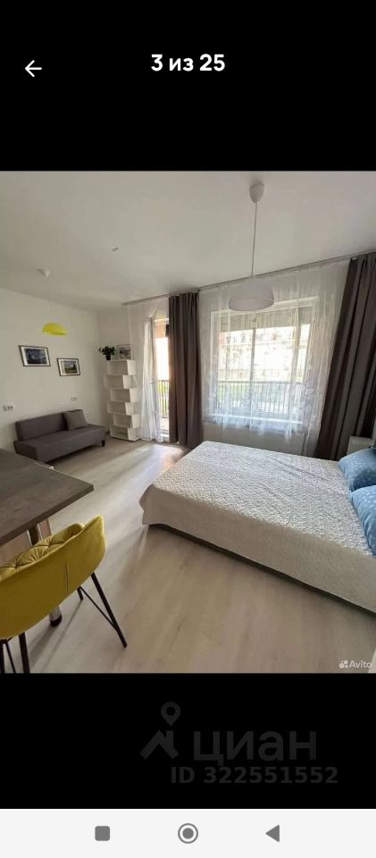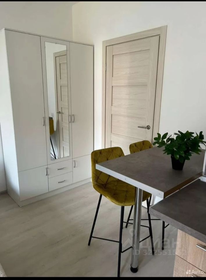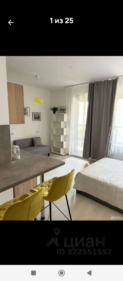 Большая и широкая студия 25м. Очень высокий первый этаж(это примерно как между первым и вторым в домах старой планировки)В стоимость квартиры входит всё наполнение: обстановка и бытовая техника, включая текстиль и посуду(при желании) . Квартира полностью укомплектована для проживания с продуманными решениями для полноценной жизни. Два вместительных шкафа+ниша для верхней одежды на 120см.