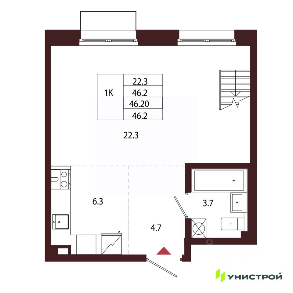Общая площадь46,2 м²