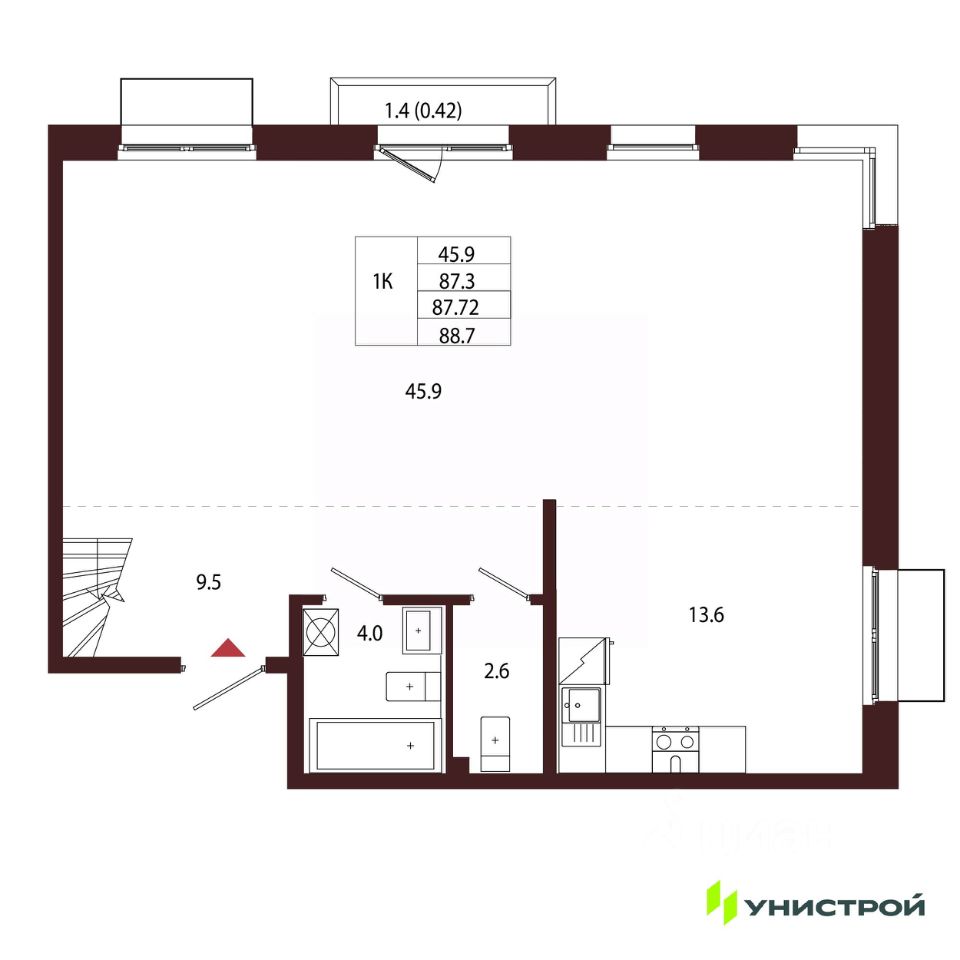 Общая площадь87,72 м²
