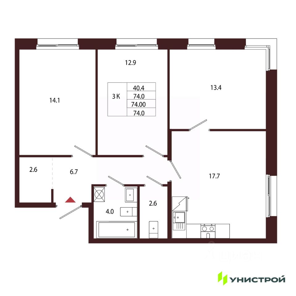 Общая площадь74 м²