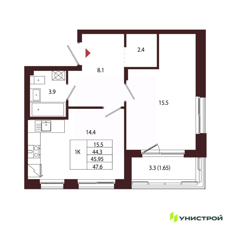Общая площадь45,95 м²