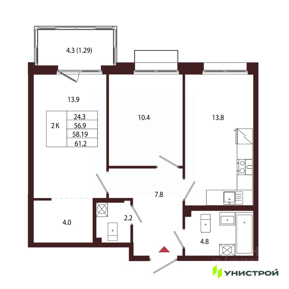 Общая площадь58,19 м²