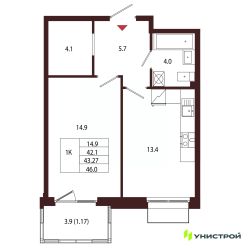Общая площадь43,27 м²
