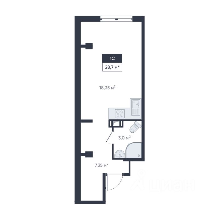 Продаётся  студия в строящемся доме, общей площадью 28.7 кв.м., на 18 этаже. С отделкой. Срок сдачи 4 квартал 2025 года.