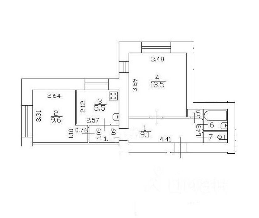 Общая площадь 41.20 кв м, комнаты изолированные 13.50+9.60 кв м кухня 5.5 кв м, санузел раздельный. Окна выходят на 2 стороны во двор. Отопление центральное, горячая вода-газовая колонка (выгодно по оплате и не бывает перебоев с горячим водоснабжением ), два отдельностоящих стояка с водой ( есть возможность разделить квартиру на 2 студии). Санузлы изолированные. Есть тамбур на две квартиры: дополнительное место для хранения , а так же приватность и шумоизоляция. Перекрытия в доме железобетонные. Перепланировок нет.