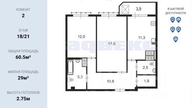 • 2 санузла, в ванной — душевая кабина, подогрев пола и электрический полотенцесушитель