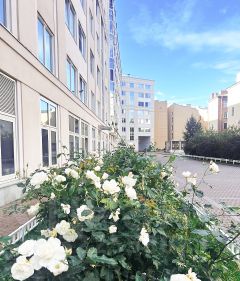 Благоустроенный ухоженный двор с авторским ландшафтным дизайном и озеленением. Вход во двор - только для жильцов дома. Во дворе - детская и спортивная площадки, уютные зоны отдыха.