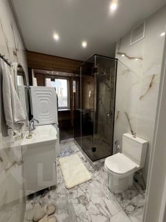 Квартира состоит из: 3 комнаты+ 2 ванные комнаты+ сауна+ 2 лоджии+ Кухня+ 2 Холла. Общей площадью: 133,4 кв.м. Площадь лоджий = 19,2кв.м. Планировка Сохранена от Застройщика. Газ. Трассы под кондиционирование, тёплые полы. Квартира тёплая, солнечная.