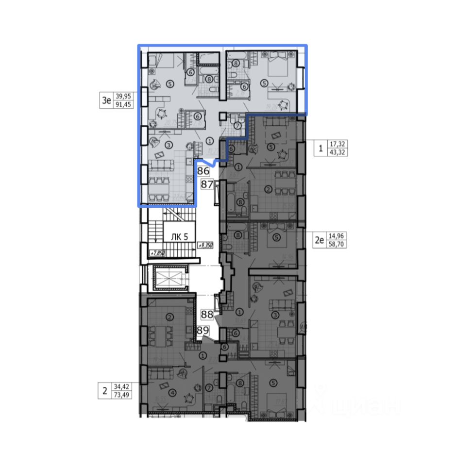 Двусторонняя планировка с 2-мя спальнями и потолками 3,5 м. Квартира готова для воплощения Ваших дизайн-проектов.