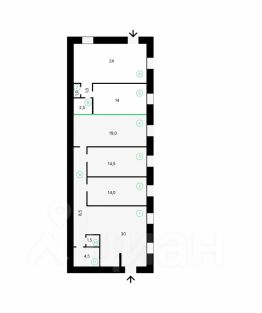 Меньшая квартира с кухней-гостиной 24 м² и спальней идеально подойдёт для аренды или проживания родственников.