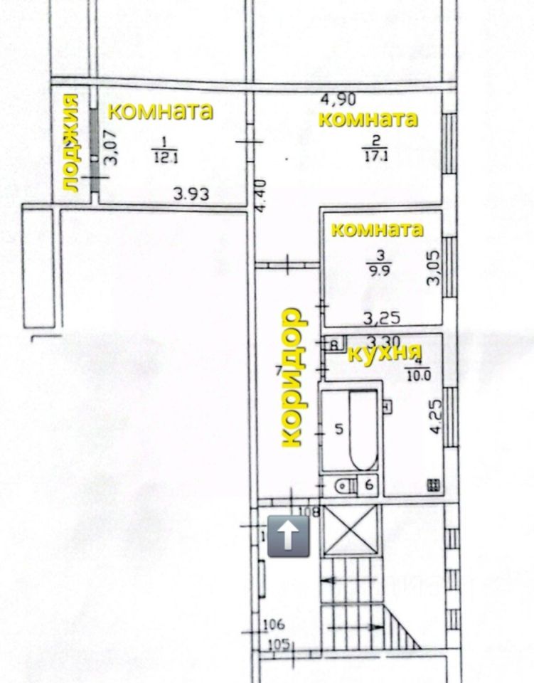 Вместительная кухня 10 м², две изолированные комнаты и одна проходная. Застеклённая лоджия, стеклопакеты по всей квартире,новые радиаторы.