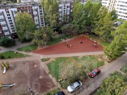 Рядом вся инфраструктура для комфортной жизни: во дворе детские сады 6 и 2, рядом лицей 1, школа 2, бассейн, стадион, парк Песчанка* для прогулок. Магазины, пекарни, аптека и банк — буквально у дома.