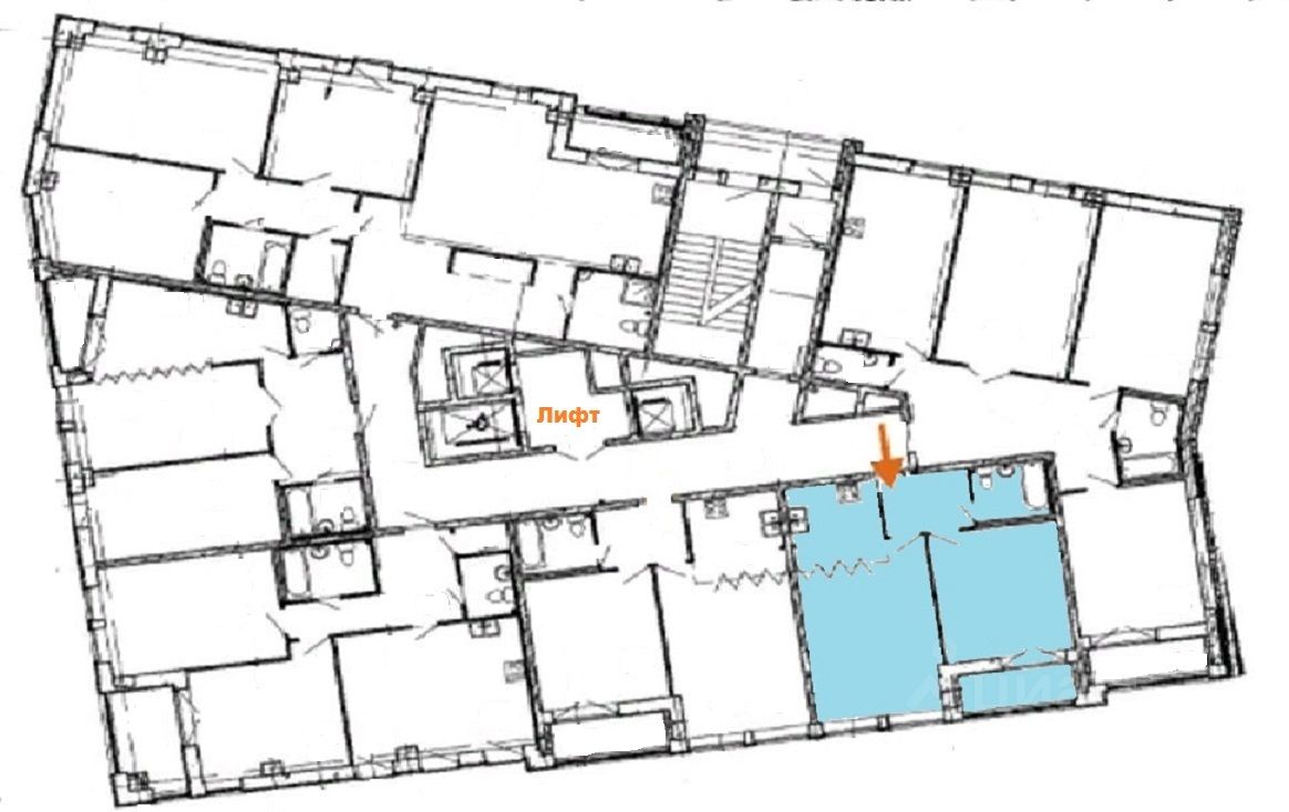 Квартира ("евродвушка") - на 9-ом этаже в 18-этажном корпусе, окна во двор, на юго-восток, что является явным плюсом, так как в квартире светло и всегда тихо, не слышно шума с проспекта Обуховской Обороны и Октябрьской набережной.