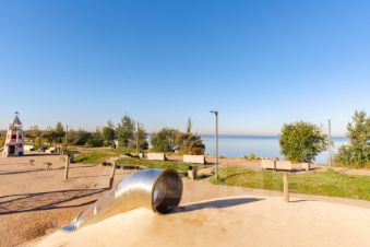 Рядом с домой благоустроенная оборудованная набережная по единой городской программе.