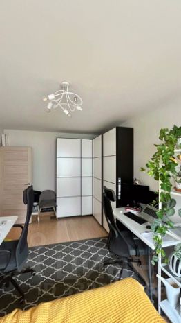 В квартире сделан ремонт от застройщика, душевая кабина заменена на ванную, заменена раковина. Кухня, несмотря на небольшие размеры, кроме кухонного гарнитура вмещает высокий шкаф для хранения и диван, на котором можно разместить гостей.