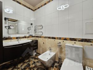 В каждой спальне оборудованы большие гардеробные комнаты и есть выходы на свои лоджии, 2 совмещенных санузла с теплым полом, один с гидромассажной ванной, второй с душевой кабиной. Изолированная кладовая комната. Высота потолков на 3-м этаже 3.03 м. Полы - паркет.