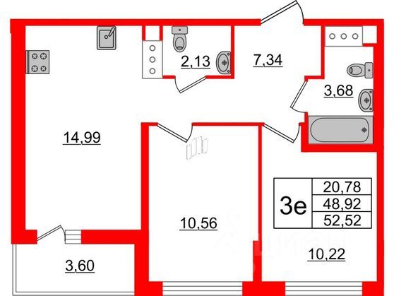 Продается уютная двухкомнатная квартира в современном жилом комплексе. Общая площадь составляет 48.92 кв. м, кухня 14.99 кв. м. Квартира расположена на 12 этаже 17-этажного кирпичного дома, построенного в 2024 году. Высота потолков 2.75 метра. Из окон открывается вид во двор, что обеспечивает тишину и спокойствие.