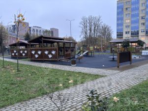 - в одном из корпусов комплекса находится детский сад, занимает 2 этажа (площадка детского сада находится во дворе).