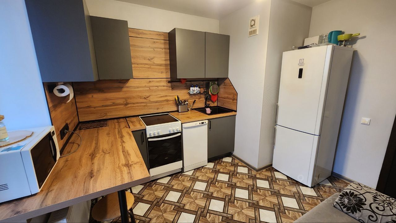 В квартире остается практически вся мебель и техника: диваны в комнате и на кухне, большой шкаф в прихожей, холодильник, микроволновка, электроплита, посудомоечная и стиральная машины, кондиционер. В ванной установлен мощный проточный водонагреватель на случай отключения горячей воды.