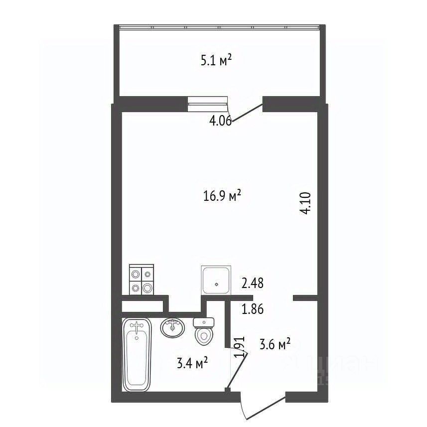 В продаже прекрасная студия площадью 23,9 м² с большой застекленной лоджией (5,1 м2 - не входит в общую площадь)в современном жилом комплексе "4YOU".