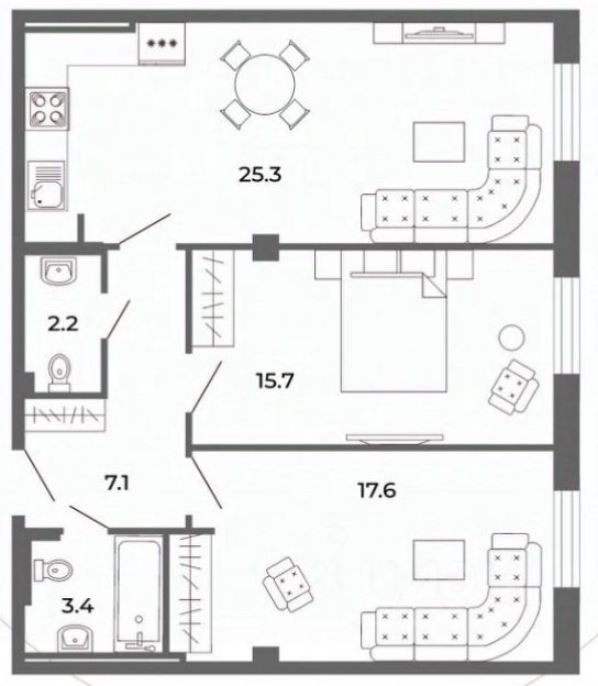 Продуманная планировка с двумя раздельными спальнями 15,7м2 и 17,6м2 удовлетворит потребности всей семьи родители получат личное пространство, а ребенок собственную комнату для развития и отдыха. Просторная кухня 25,5м2 станет настоящим сердцем дома, где можно не только готовить кулинарные шедевры, но и собираться всей семьей за ужином после рабочего дня.