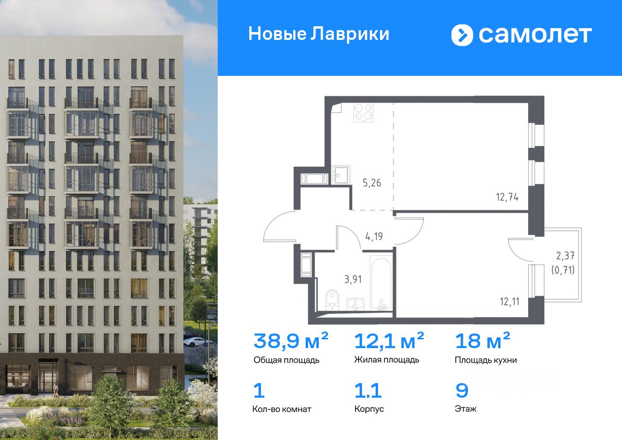 Строим кварталы для жизни с заботой о будущем. Предлагается 1-комнатная квартира комфорт-класса 38,92 кв.м в корпусе 1.1 на 9 этаже, в ЖК "Новые Лаврики"