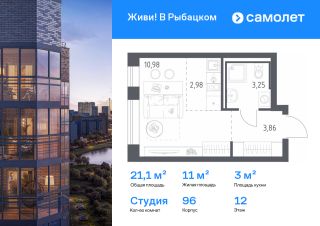 Предлагается квартира студия комфорт-класса 21,07 кв.м в корпусе 96 на 12 этаже, в ЖК "Живи! В Рыбацком"