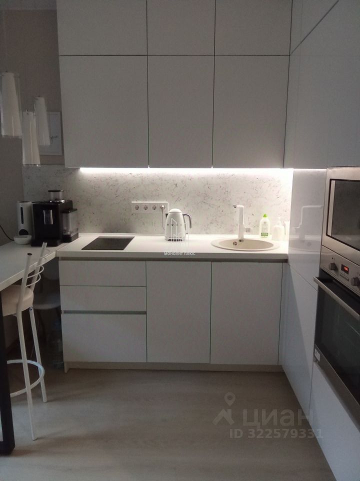-Уютная кухня-гостиная 16 кв метров с дизайнерской кухней и встроенной техникой
